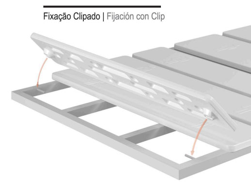 | Material anti-UV, anti-microbiano, anti-viral e anti- fúngico; | Fixação: Encaixe clipado por pino de 4mm |