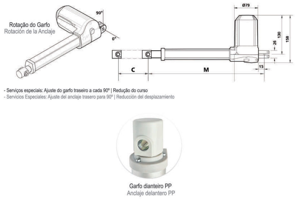 | Garfo traseiro Ø 10 x 5 mm | Ciclo de operação: 1 / 8 min |
